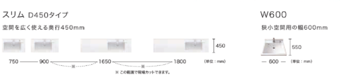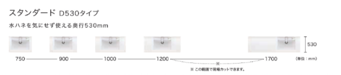 洗面台の奥行きは530mmと450mmからお選びいただけます。
