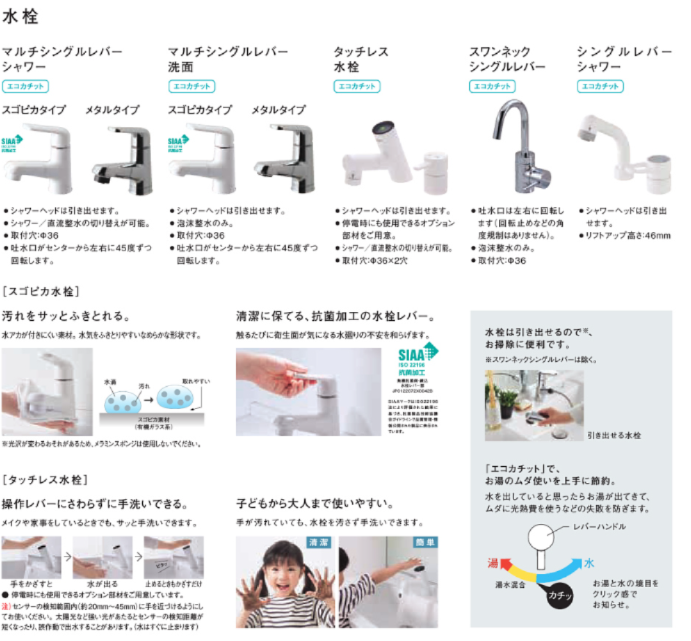 水栓:タッチレス対応プランなら非接触で衛生的。予算と合わせてご希望のタイプを選びましょう。