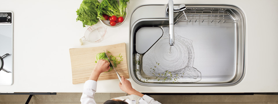 ヤマハといえば、1976年、ステンレス流し台が当たり前だった時代に国産で初めてとなる人造大理石カウンターのキッチンを発売。その後、シンクも人造大理石製に切り換えた先駆け的存在です。