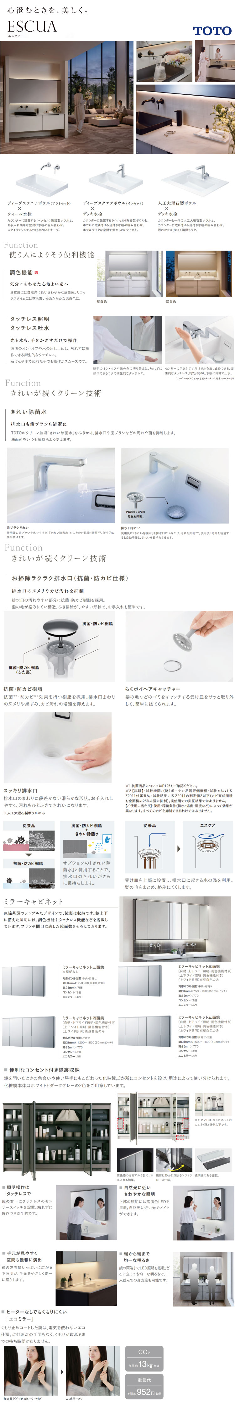 商品カテゴリ一覧 > 洗面所 > 洗面化粧台 > TOTO > エスクア > セット