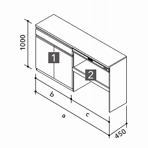 [1]ハイフロアカウンター(1段引出し・サイレントレール)[2]家電収納庫(オープンタイプ)間口(a)120cm/(b)60cm/(c)60cm間口(a)135cm/(b)60cm/(c)75cm間口(a)150cm/(b)75cm/(c)75cm間口(a)165cm/(b)75cm/(c)90cm間口(a)180cm/(b)90cm/(c)90cm■シンシアシリーズ全5色[対応取手:L]トーンホワイト[CAT]/トーンチャコール[CAZ]ペールウッド[C4V]/モカウッド[C4B]/チャコールウッド[E4Z]■取手:バー取手(シルバー)[L]■フロアカウンター カラーホワイト(I)ナチュラルウッド(T)ダークウッド(H)チャコール(B)