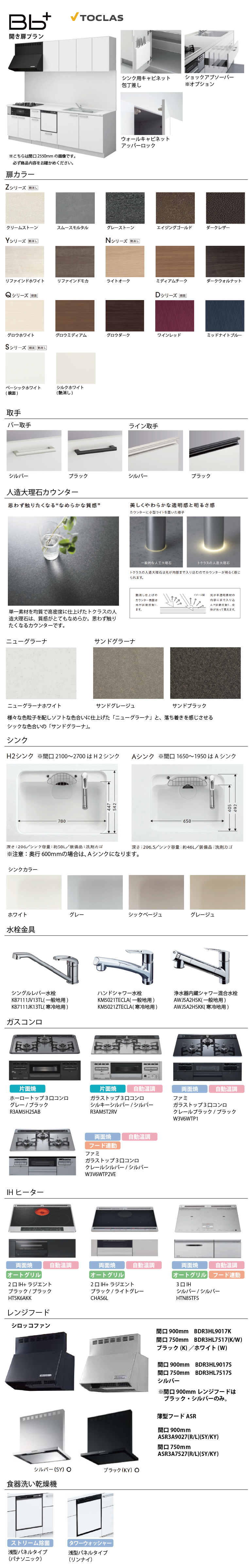加熱機器無しをご選択の場合、加熱機器は現場支給とみなしまして穴あけ加工ありで手配いたします。水栓穴無しご希望の場合は「ストアへのご要望」欄に必ず「水栓穴無し希望」とご記入ください。また、壁出し水栓を設置される場合は奥行60cmを推奨致します。※定価、販売価格には、加熱機器・水栓の価格が含まれていない金額となりますのでご注意ください。※沖縄・離島配送不可■扉カラー ■Zシリーズ艶消しクリームストーンスムースモルタルグレーストーンエイジングゴールドダークレザー ■Yシリーズ艶消しリファインドホワイトリファインドモカ ■Nシリーズ艶消しライトオークミディアムチークダークウォルナット ■Qシリーズ鏡面グロウホワイトグロウミディアムグロウダーク ■Dシリーズ鏡面ワインレッドミッドナイトブルー ■Sシリーズ鏡面艶消しベーシックホワイト/鏡面シルクホワイト/艶消し ■シンクH2シンク■シンクカラーホワイト/グレー/シックベージュ/グレージュ■取手 ■バー取手シルバー/ブラック ■ライン取手シルバー/ブラック■人造大理石カウンター ニューグラーナホワイト/サンドグレージュ/サンドブラック ■ウォールスペースアッパーロック付■水栓金具・シングルレバー水栓[一般地/寒冷地用] K87111J(V/K)13TL・ハンドシャワー水栓[一般地/寒冷地用] KM5021(Z)TECLA・浄水器内蔵シャワー混合水栓[一般地/寒冷地用] AWJSA2HSK(K)■加熱機器・ホーロートップ3口コンロ(グレー/ブラック)R3AM5H2SAB・ガラストップ3口コンロ(シルキーシルバー/シルバー)R3AM5T2RV・ファミガラストップ 3口コンロ(クレールシルバー/シルバー)W3V6WTP2VE・ファミ ガラストップ3口コンロ(クレールブラック/ブラック)W3V6WTP1・2口IH+ラジエント(ブラック/ライトグレー)CHAS6L・2口IH+ラジエント(ブラック/ブラック)HTSK6AKK・3口IH(シルバー/シルバー)HTN8STFS■レンジフード 間口900mm・シロッコファン(ブラック・シルバー)・薄型フードADR(シルバー)・薄型フードASR(ブラック/シルバー)■食器洗い乾燥機浅型パネルタイプ ストリーム除菌:NP45RS9KAA(ブラック)※奥行60cmの場合は浅型パネルタイプ タワーウォッシャー(RKWC402CAB/ブラック)になります。■レールショックアブソーバーなし/ショックアブソーバーあり